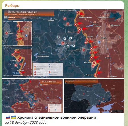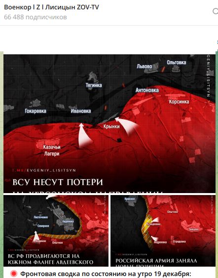 На Соледарском направлении русские войска ведут активное наступление по всей линии фронта. На Бахмутском направлении наша армия развивает успех и расширяет зону контроля у Хромово в сторону Ивановского. Не стихают бои в Клещеевке и у Андреевки, "хотя здесь их результат пока не так заметен", отмечает Лисицин.