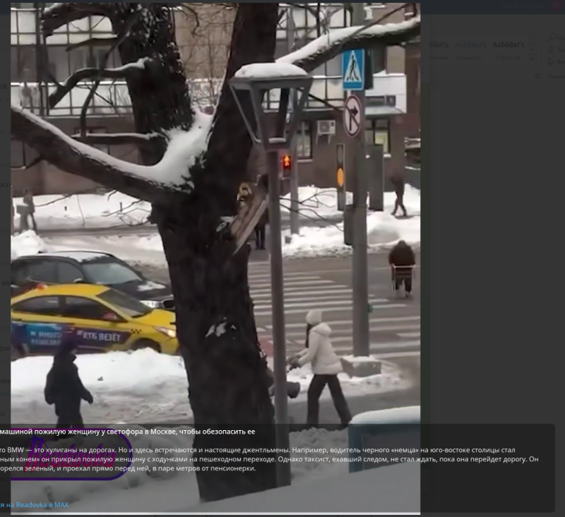 История добрая. Хотя, вероятно, найдётся некто, кому захочется критически оценить поступок этого местного героя в Москве. Водитель перекрыл дорогу, чтобы бабуля на ходунках спокойно её перешла.