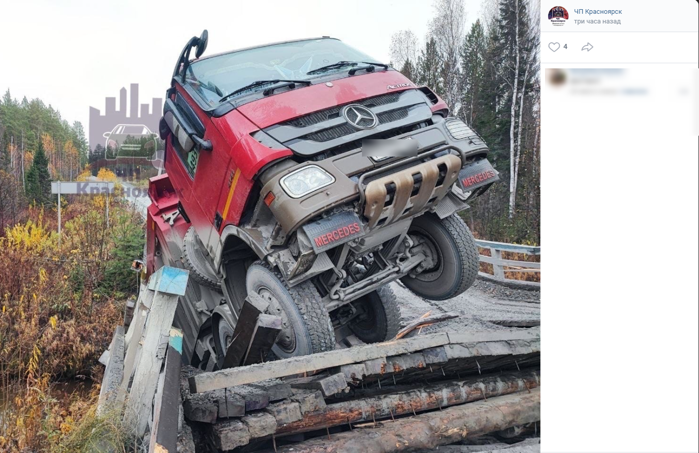 По словам очевидцев, мост является единственной переправой, которая связывает населённый пункт с транспортной сетью региона. На фотографиях видно, что самосвал Mercedes-Benz Actros проломил конструкции моста и повис над рекой, застряв в образовавшейся дыре.