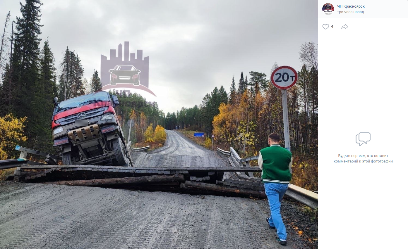 Мост к посёлку Мотыгино рухнул под тяжестью грузовика в Красноярском крае
