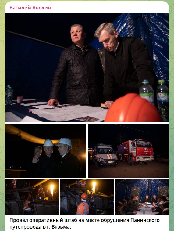 Политик рассказал, что рухнувший путепровод соединял центральную часть Вязьмы с микрорайонами Московский, Юбилейный и посёлком Вязьма-Брянская. В настоящее время организована объездная дорога через федеральную трассу М-1, выделено 16 автобусов.