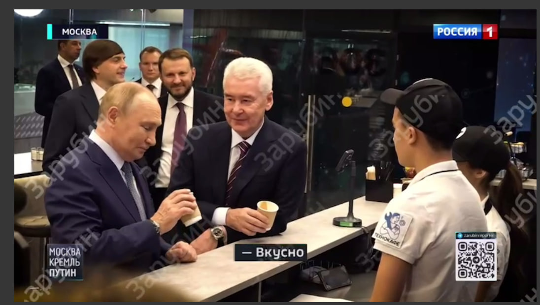 После того как Владимир Путин и Сергей Собянин подошли к барной стойке, президент попросил сделать кофе. Обыденный вопрос для любой кофейни, но вопрос президенту про американо, по понятным причинам, привлёк внимание всех, рассказывает на фоне репортёр.