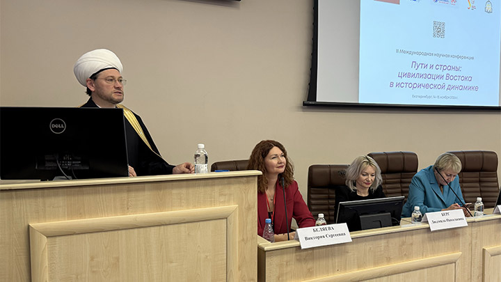 ВЫСТУПЛЕНИЕ Д. МУХЕТДИНОВА НА II МЕЖДУНАРОДНОЙ НАУЧНОЙ КОНФЕРЕНЦИИ В ЕКАТЕРИНБУРГЕ. ФОТО: САЙТ DUMRF.RU