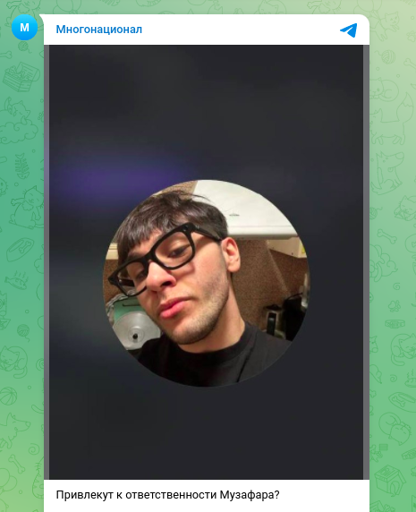 Telegram-канал "Многонационал" выяснил личность мужчины, которого взбесила икона. Им оказался некий Музафар В. По данным канала, он окончил техникум, а его мать работает уборщицей. Авторы паблика задаются закономерным вопросом: "Привлекут к ответственности Музафара?" Ведь тут налицо оскорбление чувств верующих и надругательство над святыней.