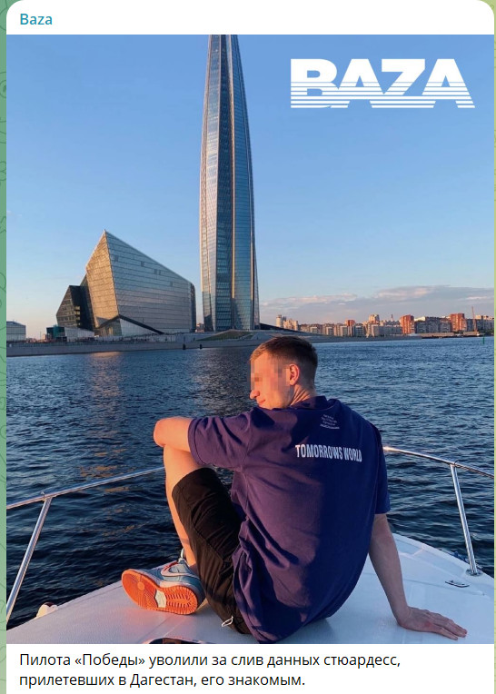 Молодой человек, работавший в "Победе" вторым пилотом, находился в Турции, передаёт тг-канал Baza. В этот момент к нему обратились друзья, которые рассказали, что сейчас гуляют по Махачкале и хотят познакомиться с красивыми девушками-стюардессами. Пилот, воспользовавшись служебным положением, зашёл во внутреннюю систему перевозчика и посмотрел, кто из девушек сейчас работает в дагестанской столице, а после передал их контакты приятелям.