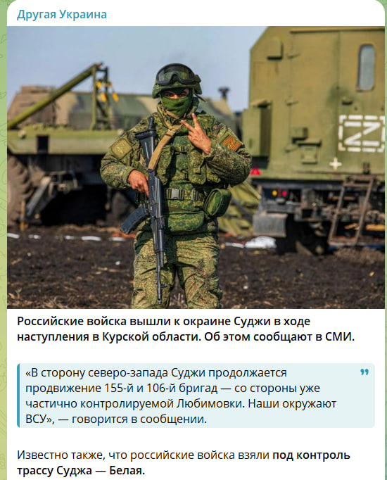 Известно также, что российские войска взяли под контроль трассу Суджа - Белая. Источники сообщают об освобождении нашими войсками Черкасской Конопельки, Новоивановки, Леонидово и Ольговки.