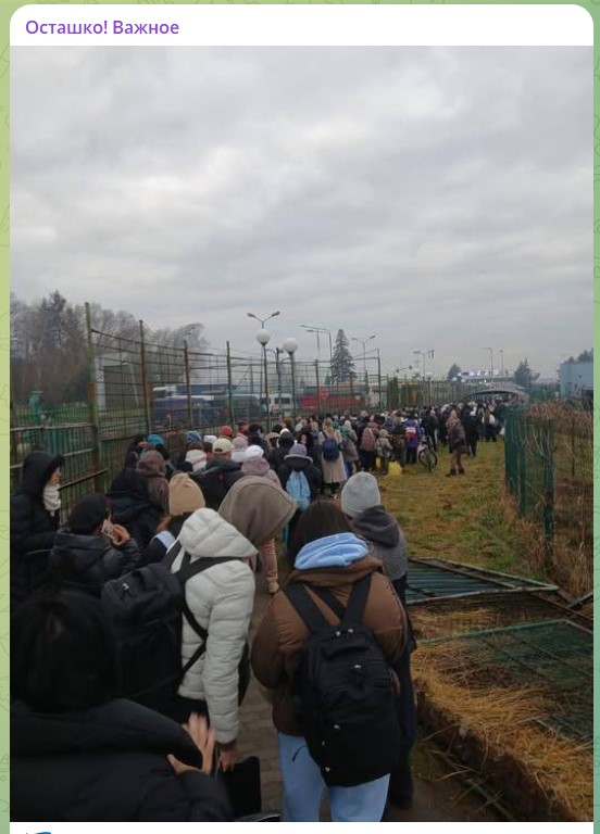 Коллапс на границе Польши и Украины вызвала волна беженцев. Тысячи людей ждут своей очереди.
