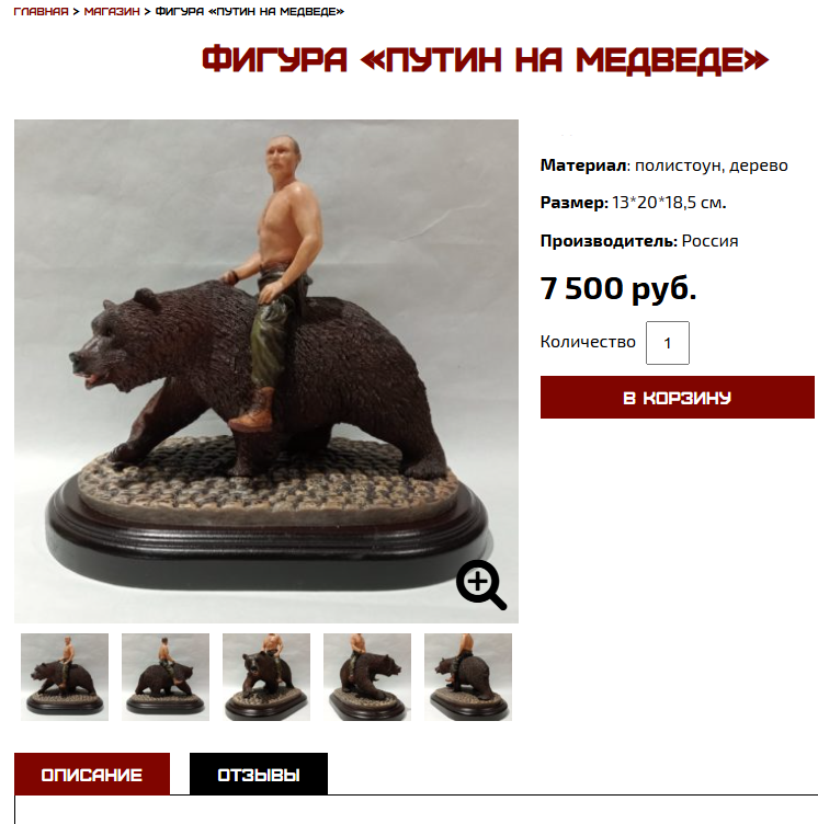 Предприимчивые бизнесмены даже удачно монетизировали популярность мема. В магазинах можно найти футболки, статуэтки, картины и прочее на тему "Путин на медведе".