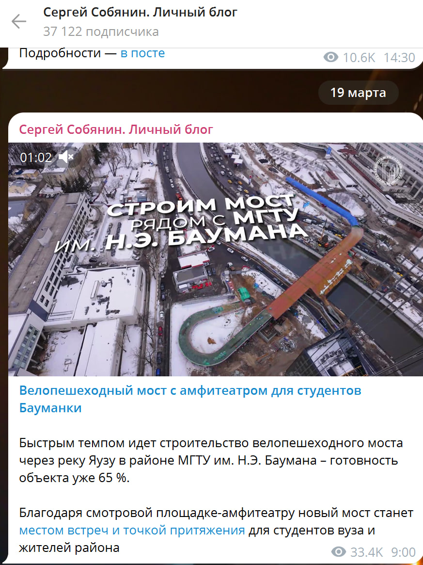 Благодаря смотровой площадке-амфитеатру новый мост станет местом встреч и точкой притяжения для студентов вуза и жителей района, отметил мэр города Сергей Собянин в своём блоге.