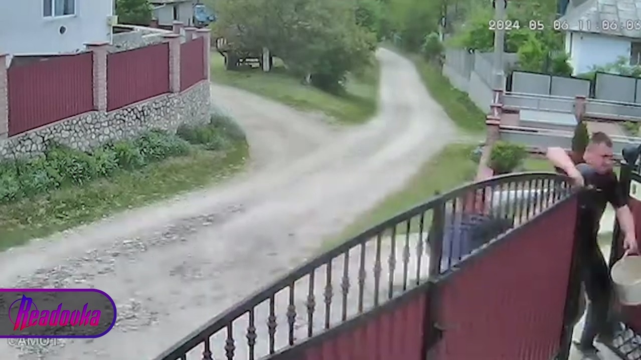 Камера видеонаблюдения записала, как трое сельчан забегают во двор и закрывают за собой калитку. А мгновение спустя мимо проезжает "бус" военкомов. К счастью для беглецов сотрудники ТЦК не заметили, куда делась их добыча, и проехали мимо.
