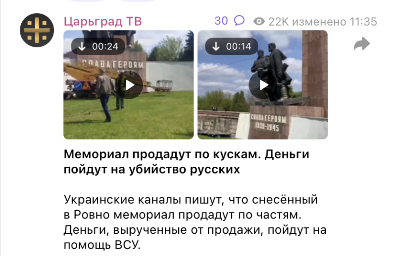 Никаких бюджетных средств на снос памятника не было потрачено, - радуется мэр города. - Обломки будут проданы, и на вырученные средства планируем приобрести дроны для наших военных.