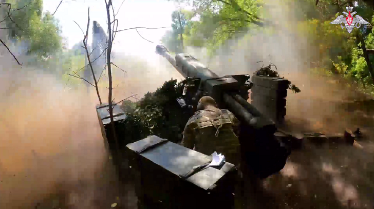 Артиллеристы группировки войск "Север" ровняют с землёй укрепления ВСУ. Фото: скриншот видео Минобороны //t.me/mod_russia/41893