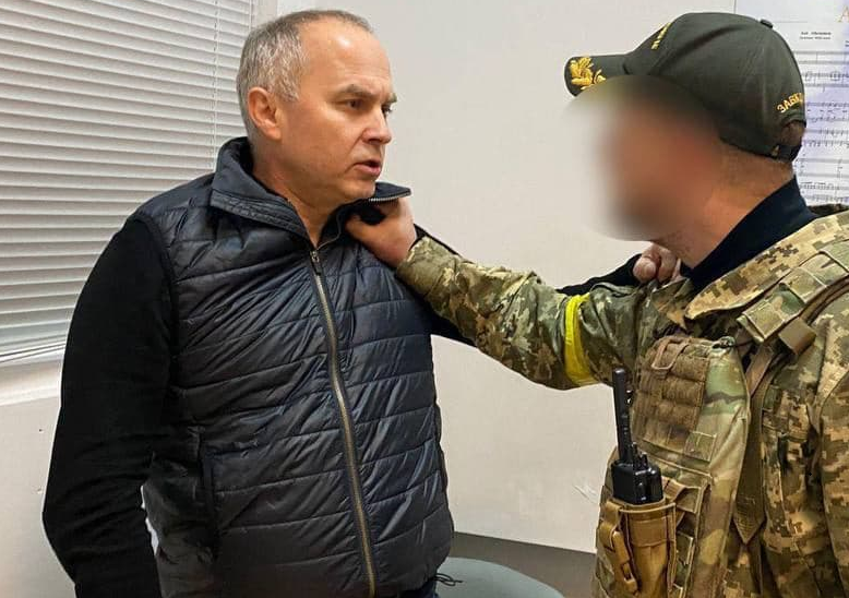 На фото видно, что депутат Шуфрич, имеющий неприкосновенный статус в стране, стоит с завязанными глазами и руками.