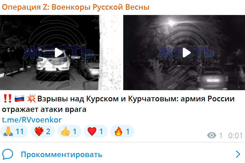 Фронтовики канала "Управление Z Курск" примерно в 22:43 сообщили, что в Беловском районе Курской области якобы "зафиксирован заход новой бригады ВСУ". Стоит напомнить, что информация официально не подтверждается. Подробнее - на Царьграде.