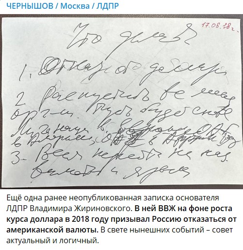 Найдена записка Жириновского от 2018 года: Пророчество сбылось до буквы
