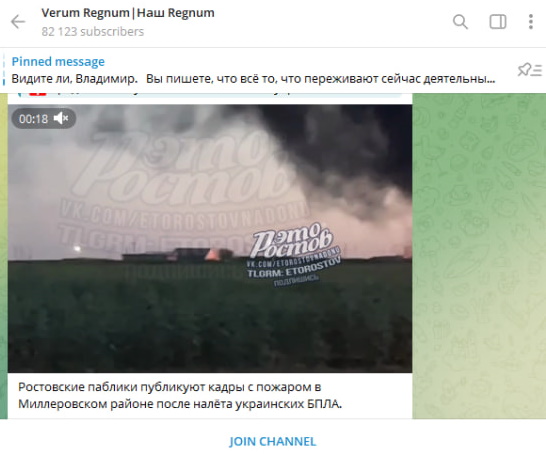 Ростовские паблики поместили кадры пожара в Миллеровском районе. Это случилось после налёта украинских БПЛА.