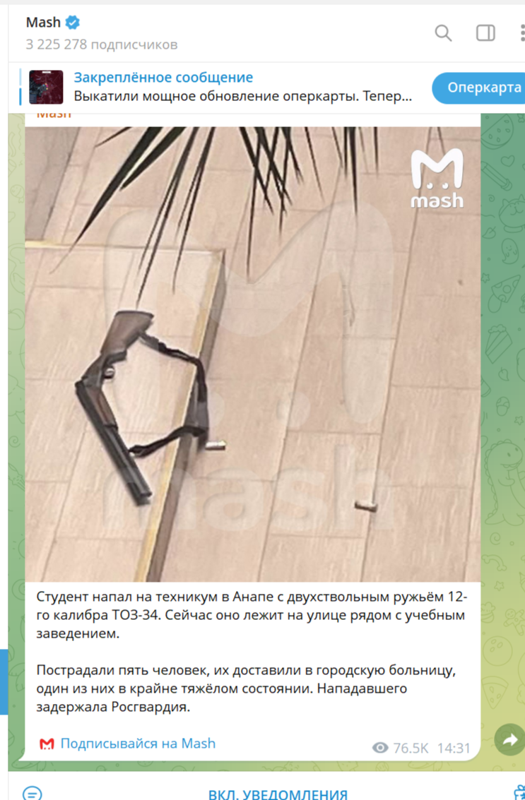 Напавший на техникум в Анапе задержан – "это подросток с ружьём". Пострадали охранник и студенты