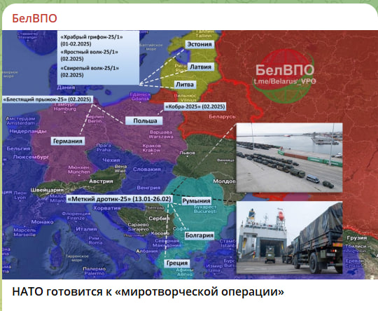 Информация о проведении большинства манёвров будет появляться по факту их проведения. Такая тенденция прослеживается в альянсе последние несколько лет. <…> Не исключено, что на фоне подготовки в Европе общественного мнения о вводе т.н. миротворческого контингента на Украину осуществляется планирование военной операции под эгидой НАТО. Причём, вероятнее всего, подготовка к её проведению осуществляется вне зависимости от результатов переговоров по линии Россия-США. <…> Сроки ввода "миротворцев" могут быть напрямую связаны с проведением крупнейших учений НАТО "Защитник Европы-2025", которые пройдут в Европе с 1 по 30 июня.