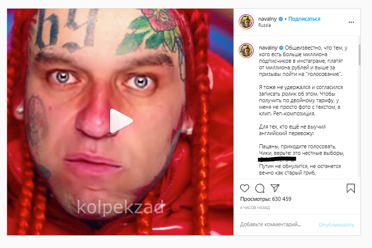 Клип, как выяснилось, настоящий - это видео на трек Trollz американского рэпера 6ix9ine (Сикснайн). Лицо оппозиционера было просто подставлено с помощью модной нынче технологии deepfake (привет Илону Маску с перепевкой хита "Землян").
