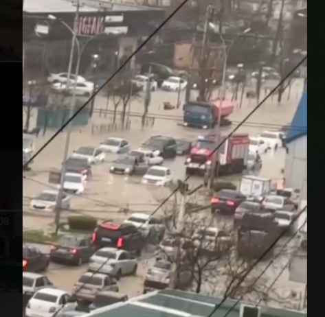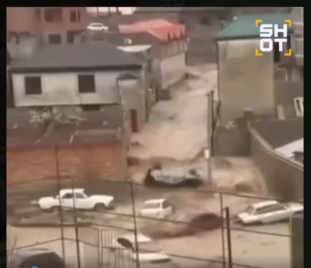Затоплена Махачкала. Скриншот: Телеграм-канал "Осторожно, новости"