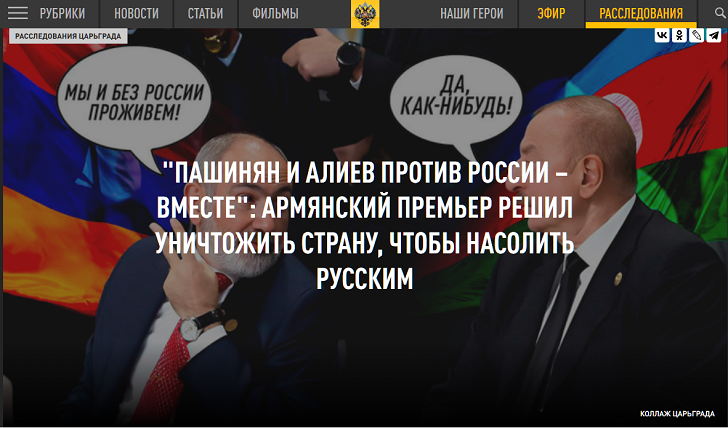 "Пашинян и Алиев против России - вместе": Армянский премьер решил уничтожить страну, чтобы насолить русским Фото: Царьград