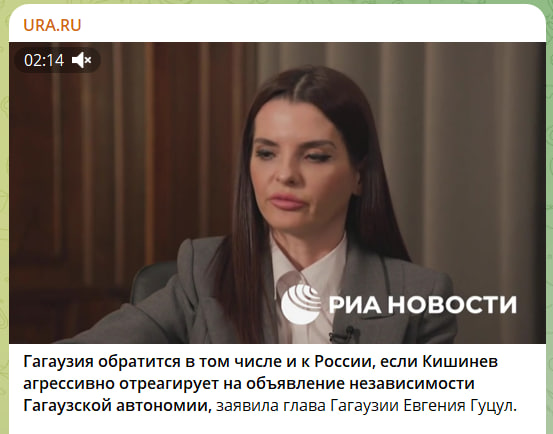 Глава Гагаузии Гуцул заявила, что обратится за помощью к России в том случае, если Кишинёв введёт армию на территорию автономии после её выхода из состава страны. В то же время сообщается, что ЕС уже готовит план по созданию военного плацдарма в Молдове для противодействия Москве.
