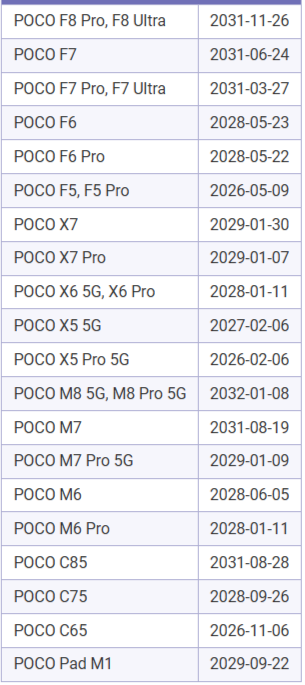 Список моделей Xiaomi, Redmi и POCO, которые скоро перестанут получат обновления включают в себя 67 позиций. Из название есть в приведенных таблицах.