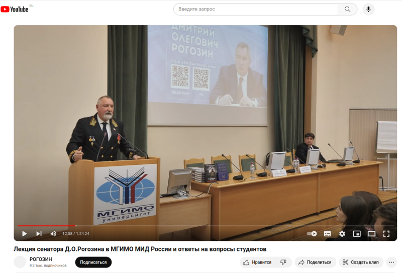 Тему так называемого "языка войны", который часто используется в ходе проведения военных действий, сенатор-фронтовик от Запорожской области Дмитрий Рогозин поднял во время своей недавней встречи с будущими дипломатами - студентами МГИМО.
