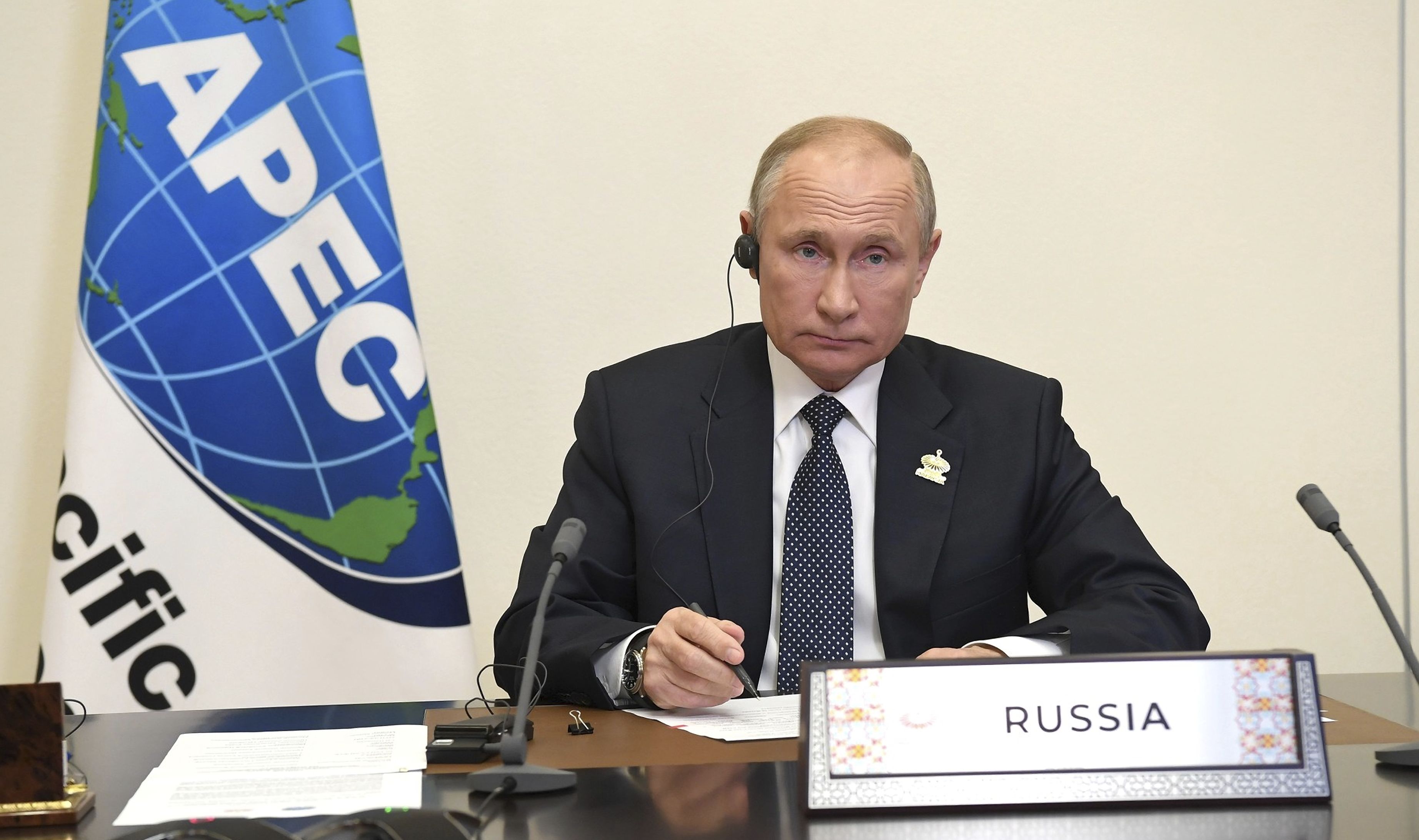 Владимир Путин во время виртуального саммита АТЭС в 2020 году. ФОТО: Aleksey Nikolskyi/Kremlin Pool/Globallookpress
