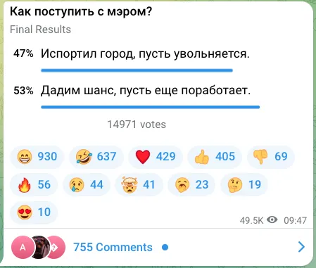 Опрос быстро перерос в шоу: подключились все кому не лень… У нас в последних выборах, которые проходили в городе, приняло участие меньше народу, чем в опросе в Telegram-канале,