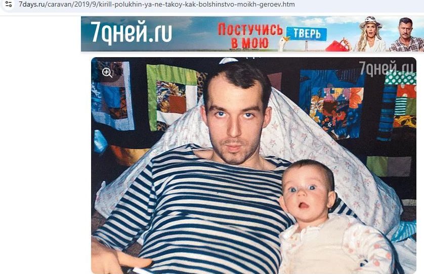 Кирилл Полухин и маленький Иннокентий. Скриншот: интернет-сайт https://7days.ru/caravan/2019/9/kirill-polukhin-ya-ne-takoy-kak-bolshinstvo-moikh-geroev.htm