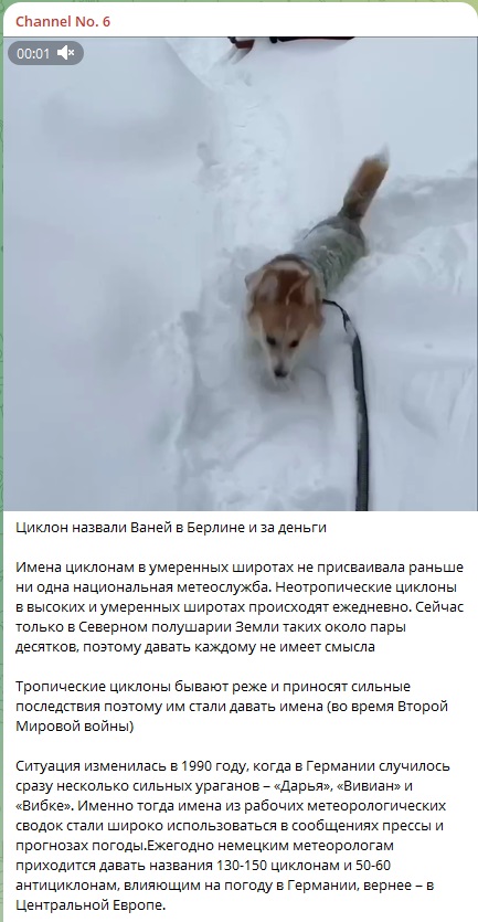 Так что имя "Ваня" нынешний снежный циклон получил именно в Берлине. Кто заплатил за это название, конечно, не сообщается.