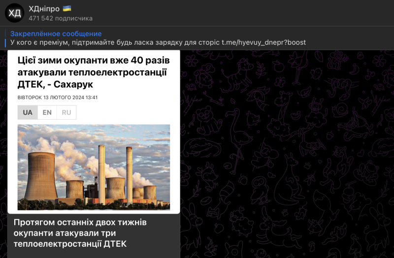 В ночь на 13 февраля в Днепропетровске было громко. В городе и области ревела воздушная тревога. Мирное население, о чём свидетельствуют записи в телеграм-каналах, больше переживало не за свои жизни (что и могло прилететь в жилые кварталы, так это ракета ПВО небратьев), а за одну из самых больших ТЭС. И, как оказалось, не зря.