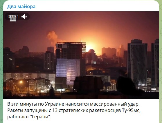 В Незалежной сразу же заявили, что ситуация серьёзная. По данным канала "Инсайдер UA | Україна | Новини", изначально "было запущено более 40 шахедов". "Часть из них до сих пор не сбита и летает в воздушном пространстве Хмельницкой и Винницкой областей. После этого были пуски ракет с 13 бортов Ту-95МС. Харьков был атакован баллистикой. Взлетели МиГ-31К, есть угроза пусков. Также в воздухе ТУ-22М3. Будьте в укрытиях, пожалуйста", - отметили в Сети.