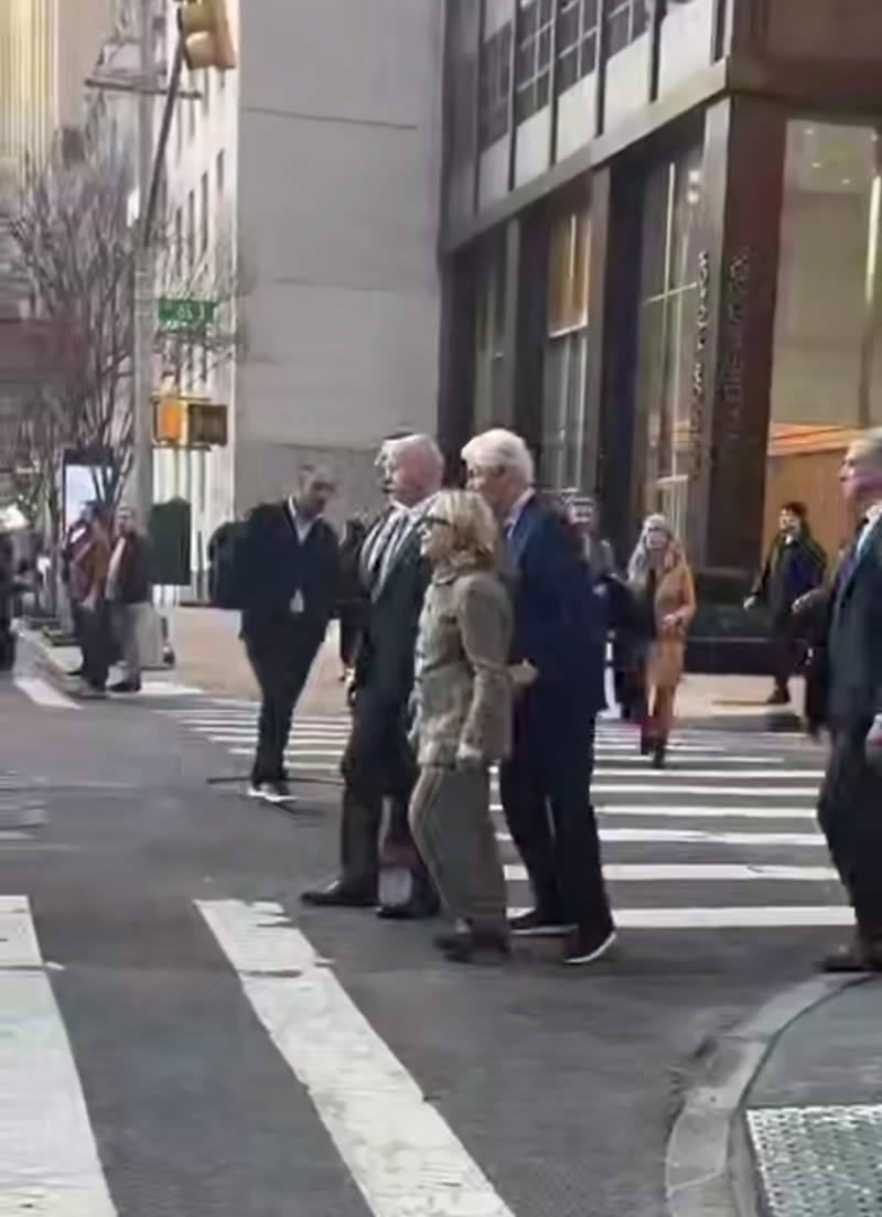 На помощь пришёл человек из окружения четы Клинтонов, который мягко отвёл Билла в сторону. На видео также можно заметить, что сам бывший президент был несколько заторможенным и не сразу ушёл с проезжей части на тротуар. Судя по всему, Хиллари ждала сигнала светофора о том, что дорогу можно переходить, а её супруг этого не понял.