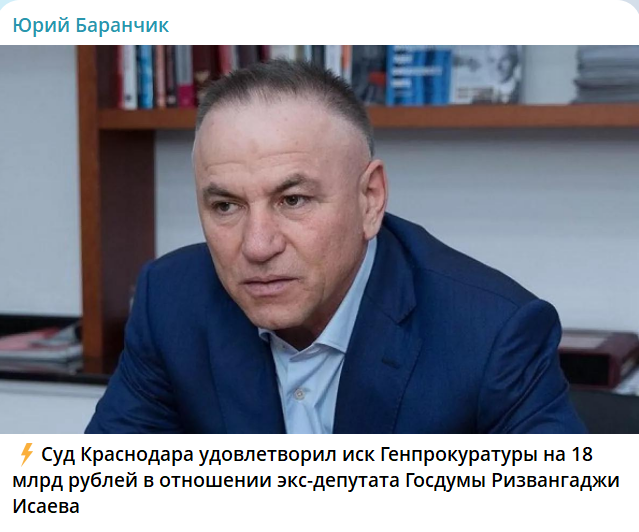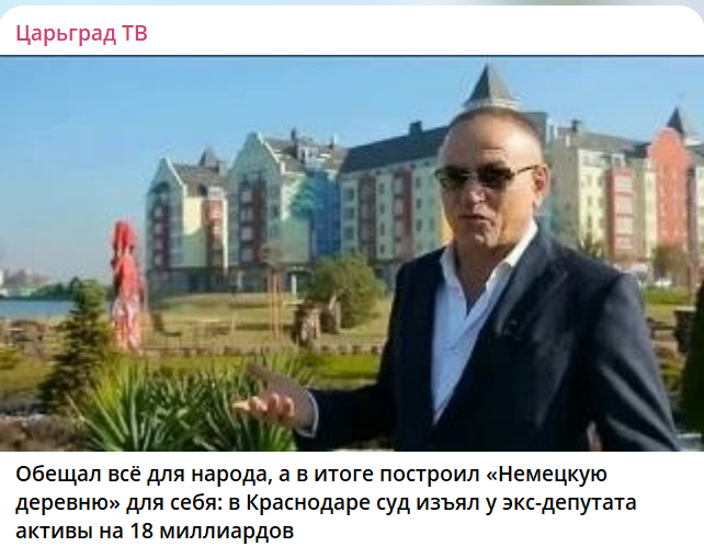 А теперь изъяли 18 млрд рублей. Кроме того, в доход государства, согласно решению Ленинского районного суда Краснодара, изъяты акции градообразующих предприятий: АО "Краснодаргоргаз" и АО "Атэк" (Автономная тепловая энергетическая компания), а также ООО "Тепловая транспортная компания" и АО "Апшеронскрайгаз".