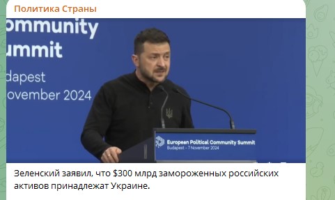 Также нелегитимный президент Украины сообщил, что считает 300 миллиардов долларов замороженных активов России - принадлежащими Украине.