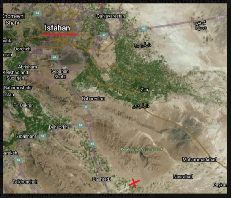 Место проведения операции, которое находится недалеко от одного из главных иранских ядерных центров Исфахан. Скриншот: Телеграм-канал "Русский инженер"