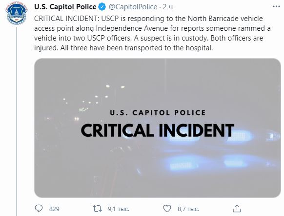 Скриншот: Twitter/@CapitolPolice