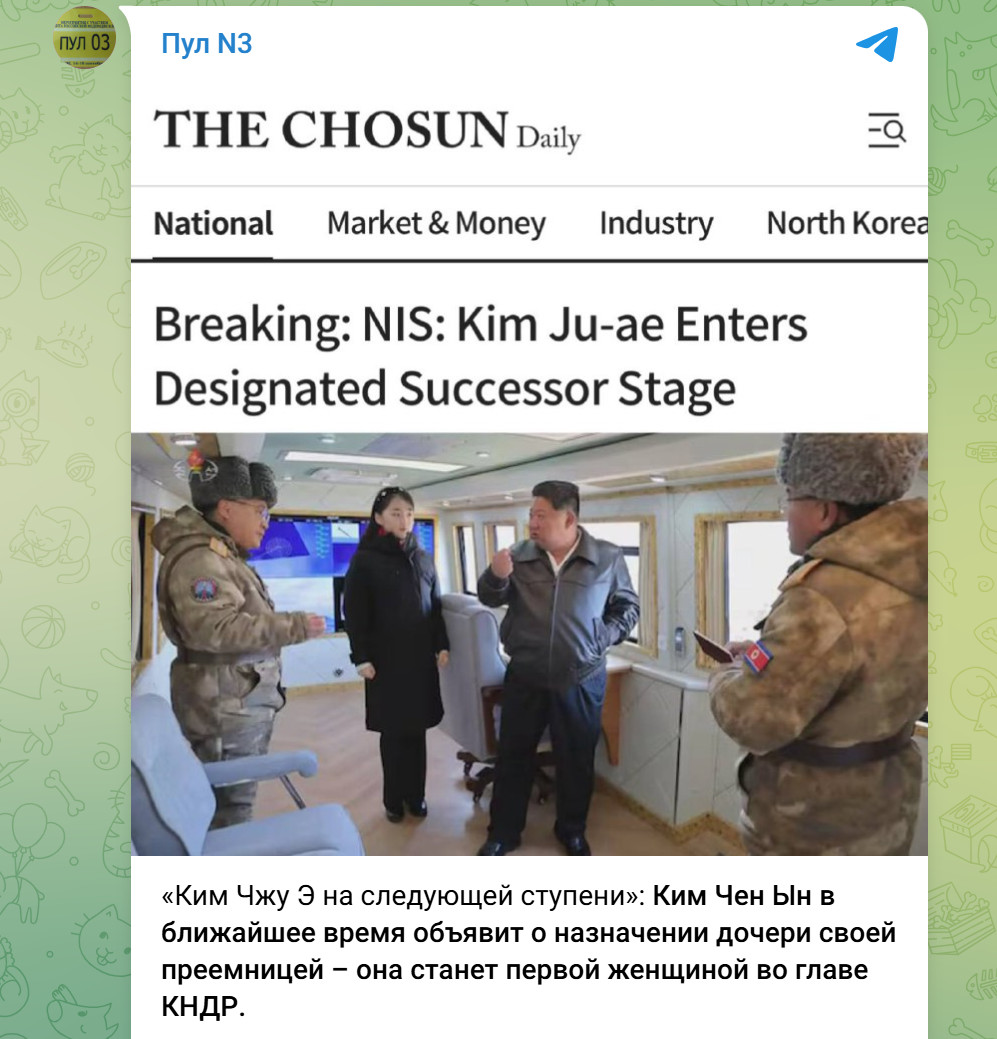 Впервые мир увидел её в ноябре 2022 года - на испытаниях межконтинентальной баллистической ракеты "Хвасон-17". С тех пор образ школьницы, шагающей по ракетным полигонам и посещающей оборонные предприятия, стал частью официального визуального ряда. Затем к военной тематике добавились гражданские объекты - стройки, заводы, инфраструктурные проекты. Таким образом формируется универсальный образ наследника: не только "гаранта безопасности", но и участника хозяйственного развития страны.