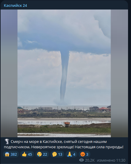 "Невероятное зрелище!" В Дагестане наблюдали гигантский смерч: Кадры