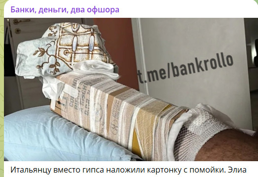 Ноу-хау итальянской медицины. Пациенту вместо гипса наложили картонку с помойки.