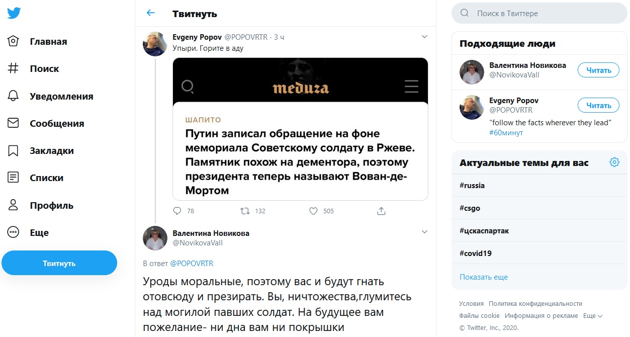 Путин записал обращение на фоне мемориала Советскому солдату в Ржеве. Издание "Медуза" сравнило памятник с дементором из "Гарри Поттера", чтобы оскорбить президента России. "Вы, ничтожества, глумитесь над могилой павших солдат. На будущее вам пожелание - ни дна вам, ни покрышки", - гневаются пользователи соцсетей.
