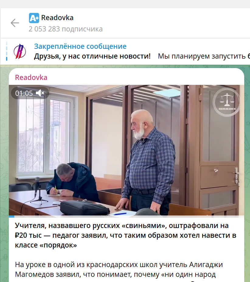 СКРИНШОТ: READOVKA/ТЕЛЕГРАМ