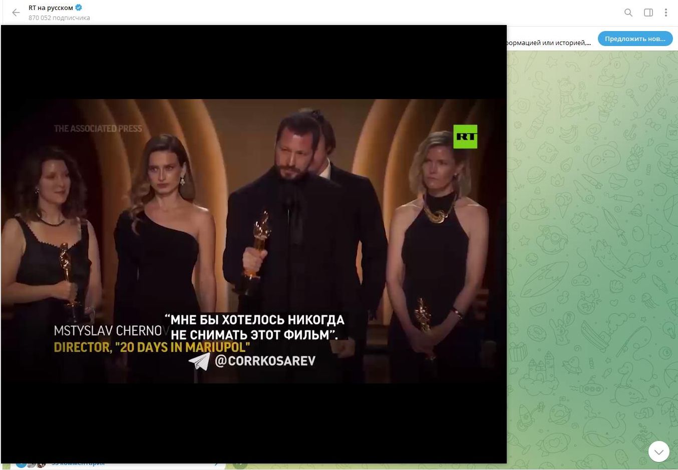 В 2024-м украинец Чернов тоже получил "Оскара" за ложь о России. Скриншот: телеграм-канал "RT на русском".