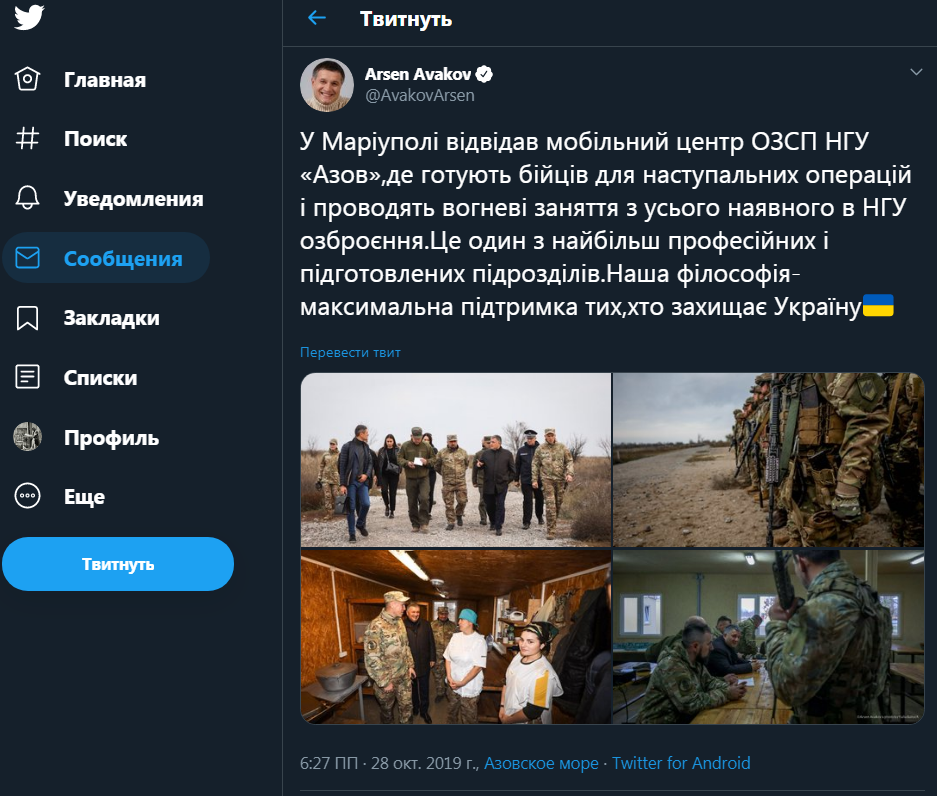 О своей поездке Арсен Аваков рассказал в Twitter. По его словам, в Мариуполь он отправился, чтобы "поддержать" бойцов "Азова", который в США собираются внести в список террористических организаций. В публикации глава МВД Украины назвал националистов "самым профессиональными и подготовленными".