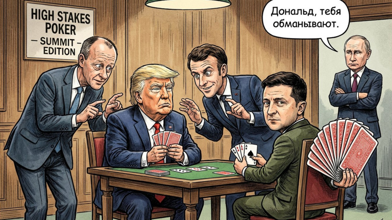 После этого лидеры договарились созвониться снова. Затем. на видеозаписи Макрон снова звонит Трампу и говорит, что он в Киеве вместе с Зеленским, Стармером и Мерцем. Французский лидер сообщает американскому коллеге, что все они согласны на его предложение о перемирии.