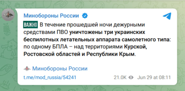 скриншот с телеграм-канала Министерства обороны России