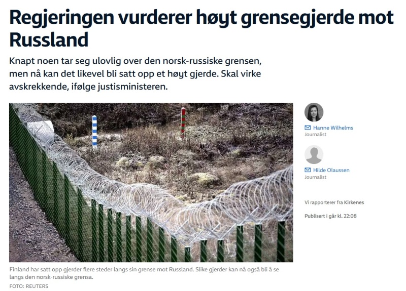 По словам главы Минюста Норвегии, руководство страны рассматривает различные меры по укреплению своей безопасности. И одной из них является строительство забора на границе с Россией.