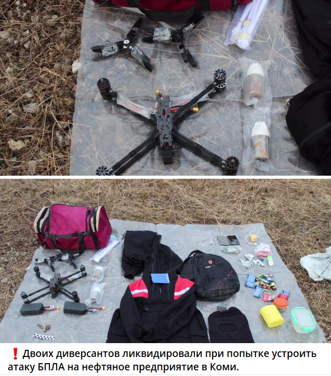 В Коми ликвидировали двух диверсантов, которые пытались атаковать нефтяное предприятие с помощью беспилотников, сообщили в Федеральной службе безопасности России.